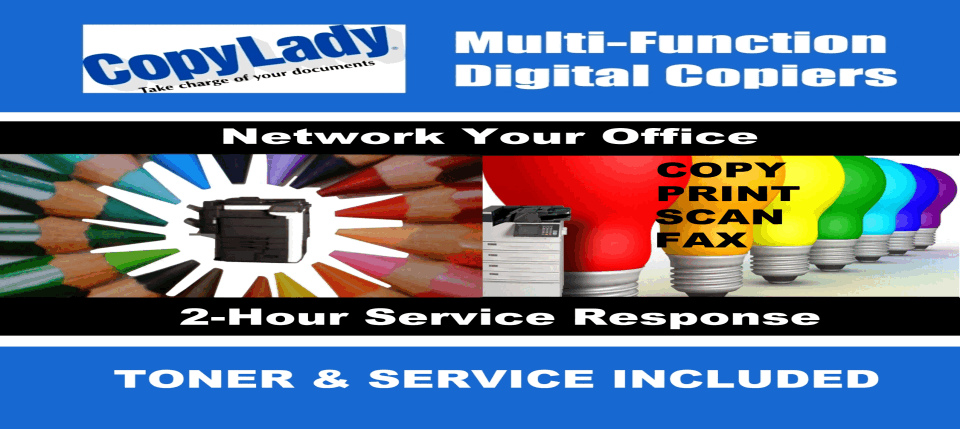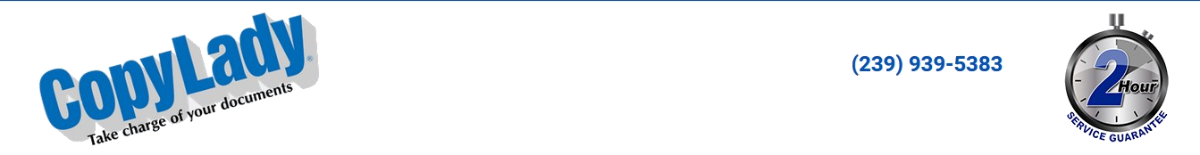 CopyLady: Proudly serving Fort Myers, Cape Coral, Fort Myers Beach, North Fort Myers,Lehigh Acres and SouthWest Florida since 2002!CopyLady is THE Kyocera dealer in the State of Florida!Check out CopyLady's full line of highly reliable Kyocera printers and copiers!Whether you need a simple desktop printer, or a beefy workhorse to keep your office running smooth, We got you covered!Already got a KYOCERA (Or CopyStar) machine that needs some work done on it? We offer the lowest hourly service rates in the state! We also carry all the parts and supplies your KYOCERA will ever need to stay running in tip top shape! Go with the only dealer in the world with the 2-HOUR RESPONSE GUARANTEE!It's time to stop waiting on service, and get back to productivity. At CopyLady, our business is to keep your business running smooth!When you sign your CopyLady service agreement, you are signing up for the fastest copier service in the world! When your machine goes down, Call us! We'll be there within 2 hours (We love to go for less than that. Like, way less!)In many cases, we can help you solve your issues over the phone without a technician coming to visit! Our highly skilled help desk technicians can solve just about any issue, big or small, during your phone call to us. If we can't fix it here, we'll fix it there within TWO HOURS!You've spent HOW MUCH on toner? Seriously?! No more! We got you covered there too!Your CopyLady service agreement comes with the toners you need to keep your machine cranking out good things!What's better, is thanks to our revolutionary Toner Replenishment System (TRS), You'll NEVER have to call and order toners! We got you covered!Once we see you are low on a toner, One of our technicians will bring a fresh one out to you! We carry a full selection of toners in our Fort Myerswarehouse, No need to wait for it to come from some other state! And yes, It's FREE!!!It's time to start saving money!GO BIG with a plotter from KIP by Kyocera!From building plans to the latest artwork, CopyLady has you covered! Check out our full line of KIP plotters!With sizes up to 44 inches, Let your creativity soar! Razor sharp Black & White, and Colors so vibrant that they pop right out of the page!The best office machines, the best response times, with the best dealer in the world. Call CopyLady today at 239-939-5383!CopyLady is your official Kyocera dealer! Call now or check out our specials!Call CopyLady Today at 239-939-5383Serving Fort Myers, Cape Coral, Naples, Bonita Springs, Lehigh Acres, Sanibel, and Southwest Florida since 2002.